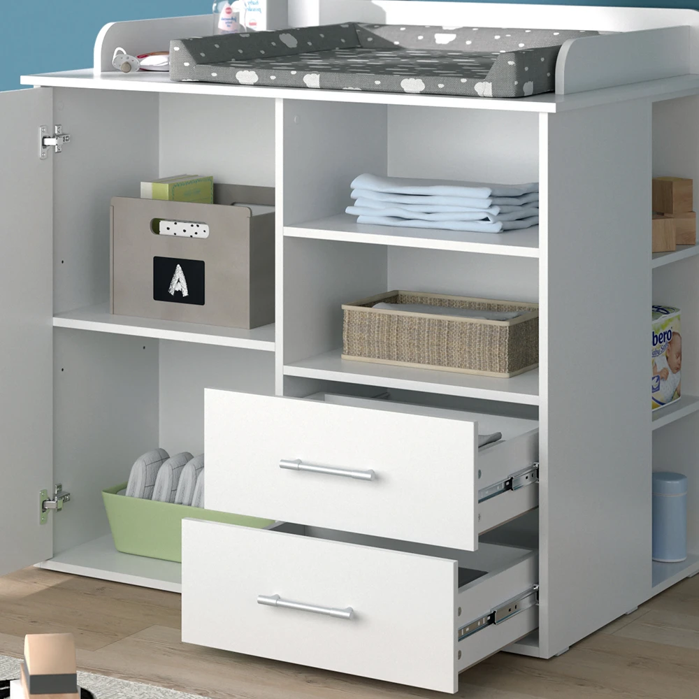 „Lea“ ist eine Möbelserie, die Babykommoden und Wohnzimmermöbel umfasst. Die Serie bietet Ihnen die Möglichkeit, einen praktischen und stilvollen Bereich für die Aufbewahrung von Babyutensilien zu schaffen und Ihren Wohnbereich gemütlich einzurichten.
