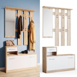 Wandgarderobe „Oswald“ Eiche 45 X 142 Cm Mit Spiegel OK-Living